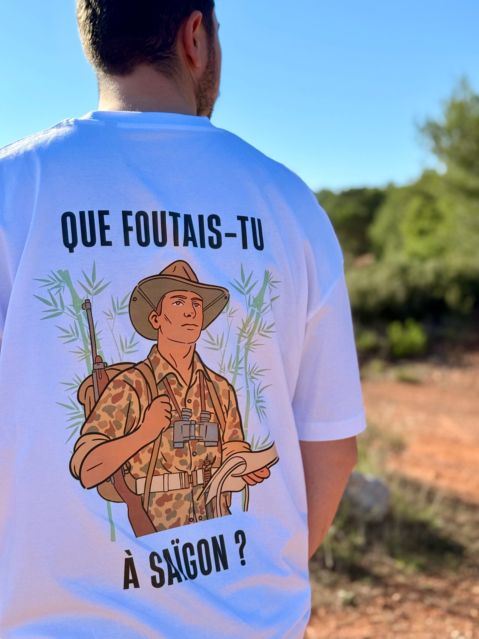 Découvrez en précommande le t-shirt LE PARACHUTISTE qui rend hommage au parachutistes d’Indochine. Illustré d’un dessin exclusif MNEMIA, il capture l’instant où le courage prend son envol. La phrase “Que foutais-tu à Saigon” résonne comme un cri d’admiration pour ces hommes d’honneur.